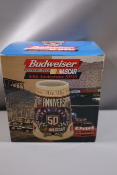 A 50th anniversary of NASCAR, Budweiser beer stein. Very good condition. 8" T