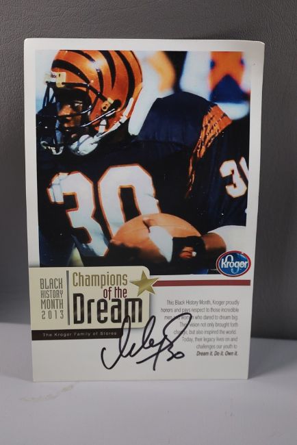 A signed Ickey Woods photo. Very good condition. 5" x 7"