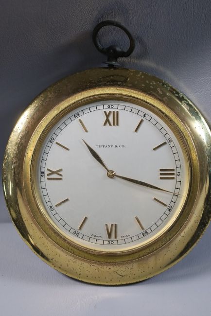 A TIFFANY & CO #507 WALL WINDUP WALL CLOCK. WINDS AND TICKS BUT HAS SURFACE CONDITION ISSUES. 5.5"