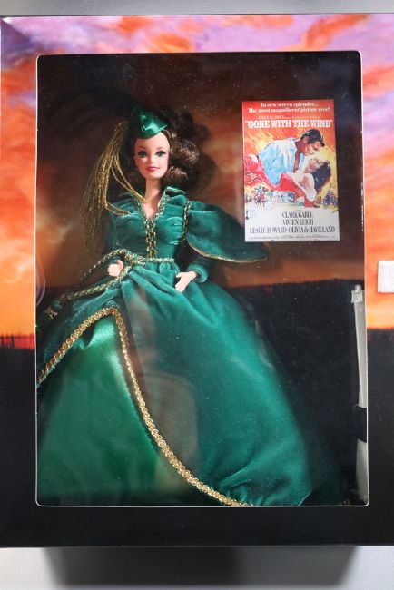 A BRAND NEW GONE WITH THE WIND BARBIE DOLL AS SCARLETT O'HARA IN GREEN VELVET DRESS.