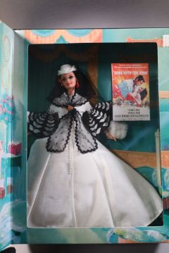 A BRAND NEW GONE WITH THE WIND BARBIE DOLL AS SCARLETT O'HARA IN BLACK & WHITE DRESS.